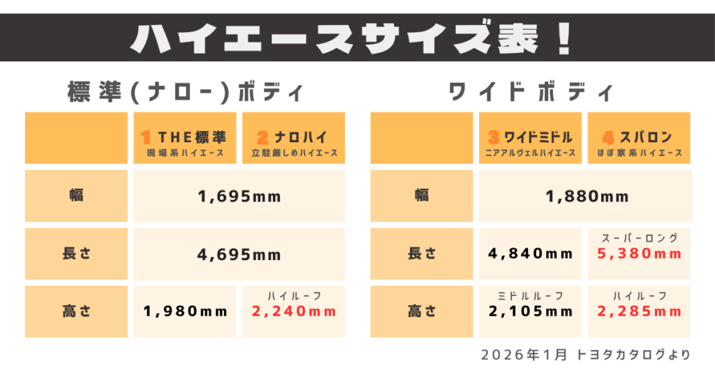 ハイエースのサイズ表ッ!